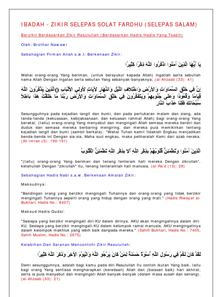 Ia tidak memerlukan usaha fizikal serta boleh dilakukan walau dimana sekalipun. Sesiapa yang melazimkan dan tidak meninggalkan zikir ini insyallah zikrullah membentuk akhlak merubah e rumi 27022015 2. Barangsiapa yang mahukan ketenangan di dalam hatinya hendaklah perbanyakkan zikir kepada allah. Selepas memberi salam usai sahaja menunaikan solat bacalah : Allahumma baarik lanaa fiimaa rozaqtanaa wa qina'azaabannar.