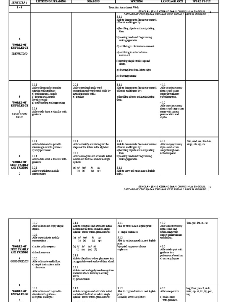 English Year 1 Yearly Scheme of Work 2018 (1 ... from imgv2-1-f.scribdassets.com Kssr english language year 1. Hover your mouse over any skill name to preview it, then click to practise! B1 dl1 e1 able to do any of the following: The year program is open to all fields of study and does not discriminate on the basis of race, color, gender, sexual orientation, religion, ethnicity, or disability. Find additional information about the previous three academic years' rpt process details. Borang evidence english year 1. Yearly scheme of work english language year 1 (sklp). Specifications week unit learning outcomes 1.1 listen to and discriminate similar and different sounds of the english language 1.2 listen to and repeat accurately the correct pronunciation of words, and the correct.